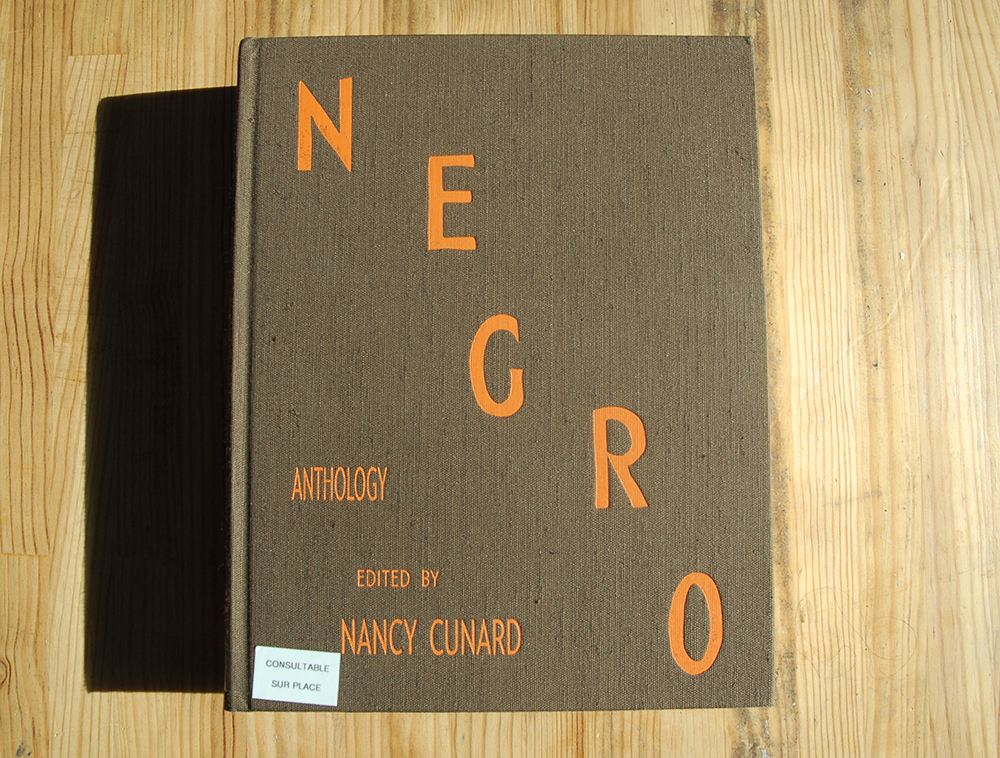 Cet ouvrage-maelstrom documente sur plus de 800 pages la modernité noire, africaine et de la diaspora des années 30 en un objet à la forme hybride entre collage-encyclopédique et contre-ethnographie. Il compile ainsi une grande variété de poèmes, de textes inédits ainsi qu’une riche sélection iconographique. En parallèle, un travail archivistique brut rassemble des chants des plantations, des dictionnaires d’argot, tracts politiques, traités historiques, récits d’esclaves, comptes rendus de jugements, guide anti-préjugés, cartes de l’Afrique pré-coloniale. Parmi les 150 contributeurs, on croise des figures tels que W.E.B Dubois, Franklin Frazier, Sterling Brown, les sœurs Jane et Paulette Nardal, Léopold Sédar Senghor ou encore Suzanne et Aimée Césaire. Edité en seulement 100 exemplaires à l’époque au vu de son caractère monumental, l’Anthology paraît aujourd’hui en une version rééditée.