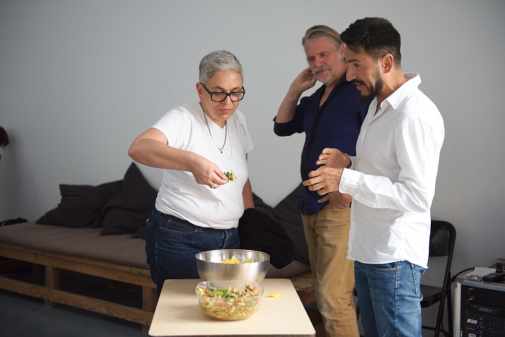 Depuis cinq ans, Ricardo Rubio (Mexique) et Robert Steijn (Amsterdam) ont entamé une collaboration sur l’intimité de l’être humain. Venant tous deux du champ de la danse, ils s’inscrivent de plus en plus dans le celui des actions performatives. Dans leur travail, le conflit et la rencontre entre différentes cultures prennent une place centrale à travers des rituels personnels, des danses, des poèmes et des situations théâtrales. Ils confrontent l’idéologie occidentale de l’art à la valeur des danses et des rituels traditionnels d’Amérique latine. Leur premier travail en commun était «prélude sur l’amour», une série d’exercices sur la tendresse et la masculinité, remettant en cause les schémas du patriarcat et du machisme. Depuis peu, ils ont commencé à travailler sur un projet sur les dix ans à venir «loverhood». Il s’agit d’une chaîne d’actions performatives, d’ateliers et de textes traitant de la dimension spirituelle de la formation d’une communauté, basée sur la notion d’amour nourrie d’indépendance. Un amour qui suit les lois de l’alchimie, qui permet l’existence de réalités immatérielles et qui célèbre l’acceptation et la transparence. Pour ce week-end, Endetter et punir aux Laboratoires d’Aubervillers, Robert Steijn et Ricardo Rubio proposent une nouvelle version de Loverhood, dans laquelle ils se focaliseront sur le rituel de la gratitude envers l’autre comme acte de dette, en période de décolonisation. Ils se concentrent sur la croyance que la respiration et la nourriture sont les sources pour nourrir le corps et que la fabrication de la nourriture est au cœur de la culture de chacun, la nourriture ne pouvant plus être perçue comme un outil permettant de créer de la richesse dans un marché global.