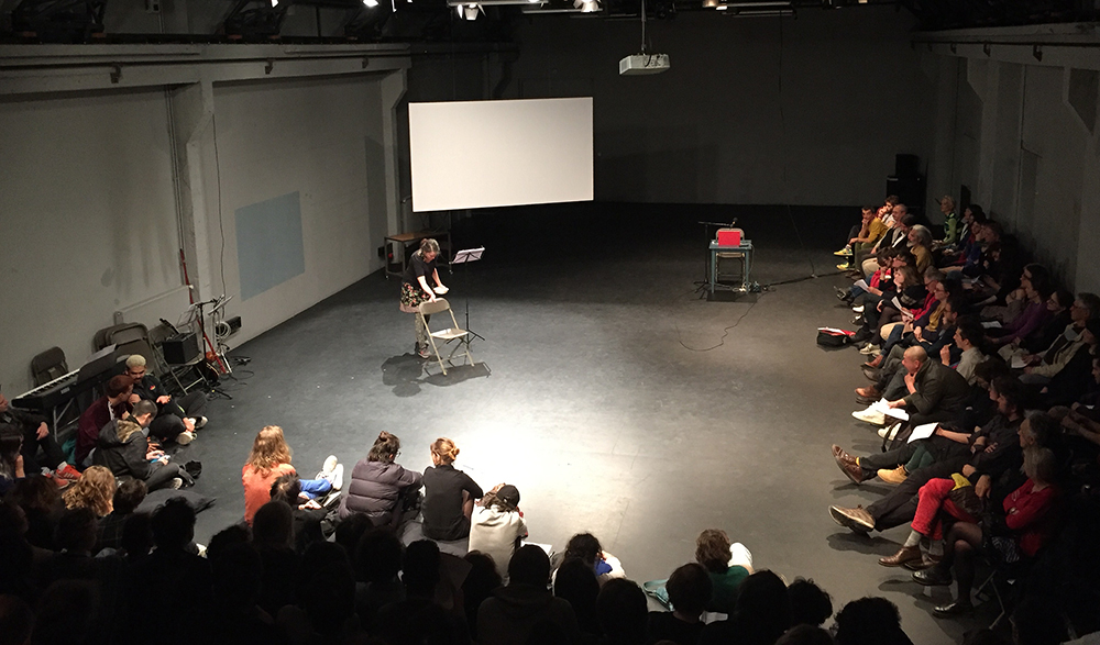 Lecture-performance, en hommage à How To Suppress Women’s Writing de l’autrice de SF féministe Joanna Russ dont la couverture du livre offrait une déclinaison de : « Elle l’a écrit mais… » illustrant les arguments avancés en faveur d’une disqualification de l’écriture des femmes.