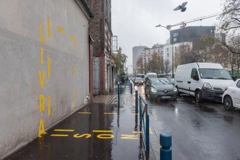 Libérée de sa fonction de signalétique routière, inutilisable comme place de stationnement, l’inscription LIVRAISON devient du Street-Art.
