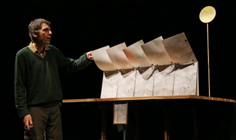 Patrick Corillon - L'appartement à trous, 60 minutes pour parler toutes les langues (Holey apartment, 60 minutes to speak all languages): on a table with multiple drawers, Patrick Corillon (artist, writer, playwright) brings to life sketchbooks made by prisoners sentenced to death. Their drawings of people and landscapes accompany the stories that they told themselves to keep hope alive. We all know that stories can save us, but do they have that power because they lead us far from the world we live in or on the contrary because they give us the strength to face the starkest realities?