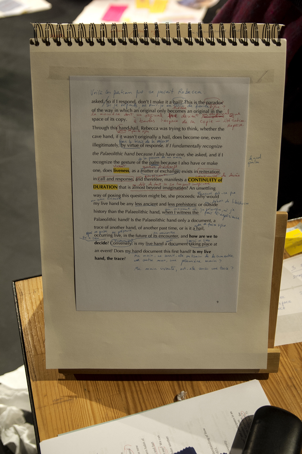 Le projet est de fabriquer, après l’expérimentation commune auprès d’une diversité d’intervenants (artistes-chercheurs, doctorants en thèse de création…), autant d’objets performatifs que d’artistes présents durant le workshop. Autant d’objets performatifs singuliers, issus des recherches individuelles de chacun, interrogeant ce que les outils performatifs font à une méthodologie universitaire, ce que le plateau fait à la page, ce que l’étude, l’essai, le document, la partition, le manifeste… font au geste chorégraphique.